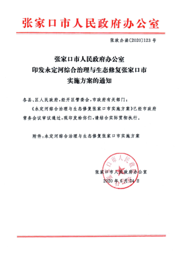近日,張家口市人民政府正式印發(fā)《永定河綜合治理與生態(tài)修復(fù)張家口市實施方案》。